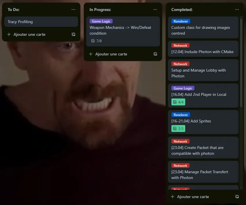 Once the player manager was coherent, I implemented the 2 players playable on a single application so I could find the first gameplay or logic bugs that would have been harder to debug with two online clients .